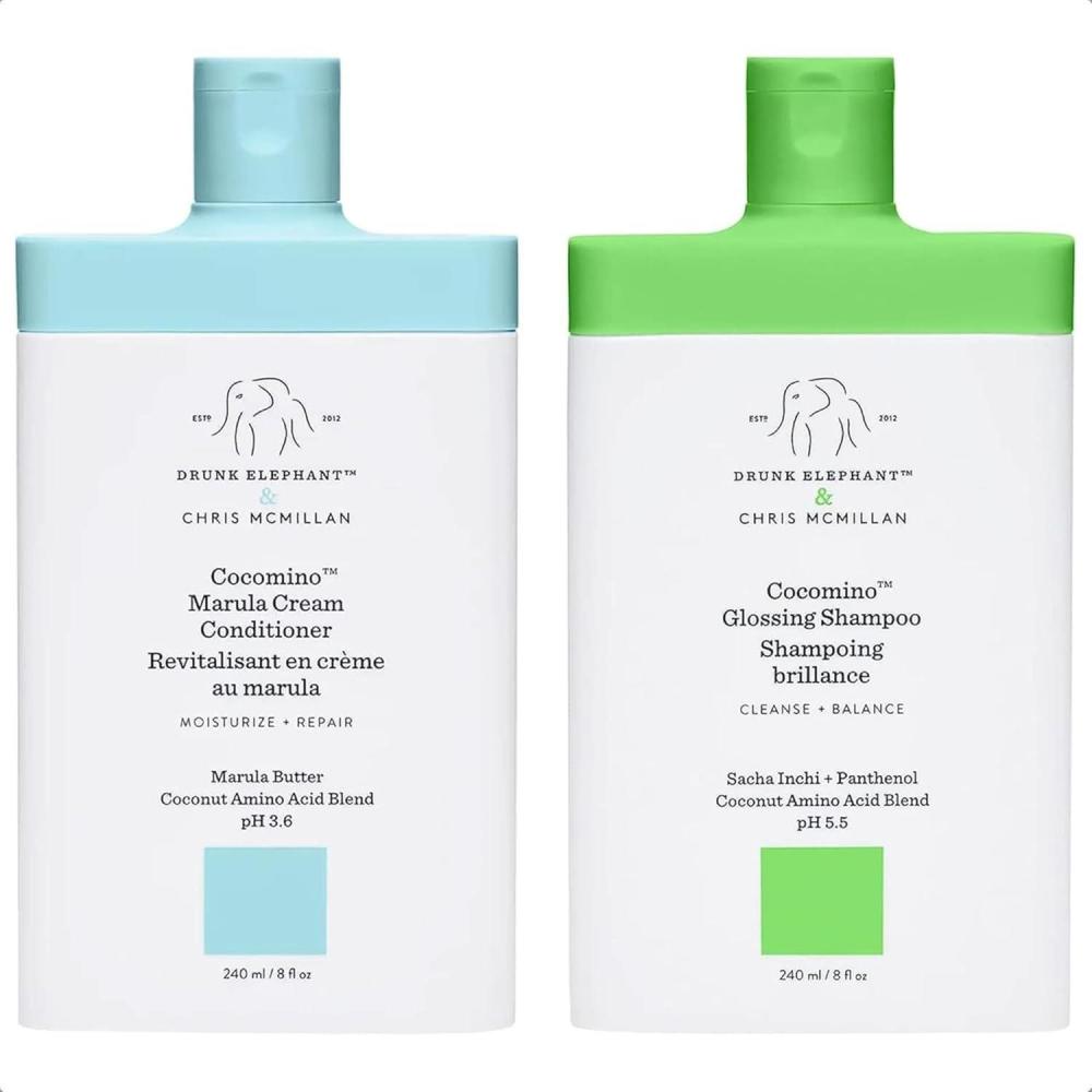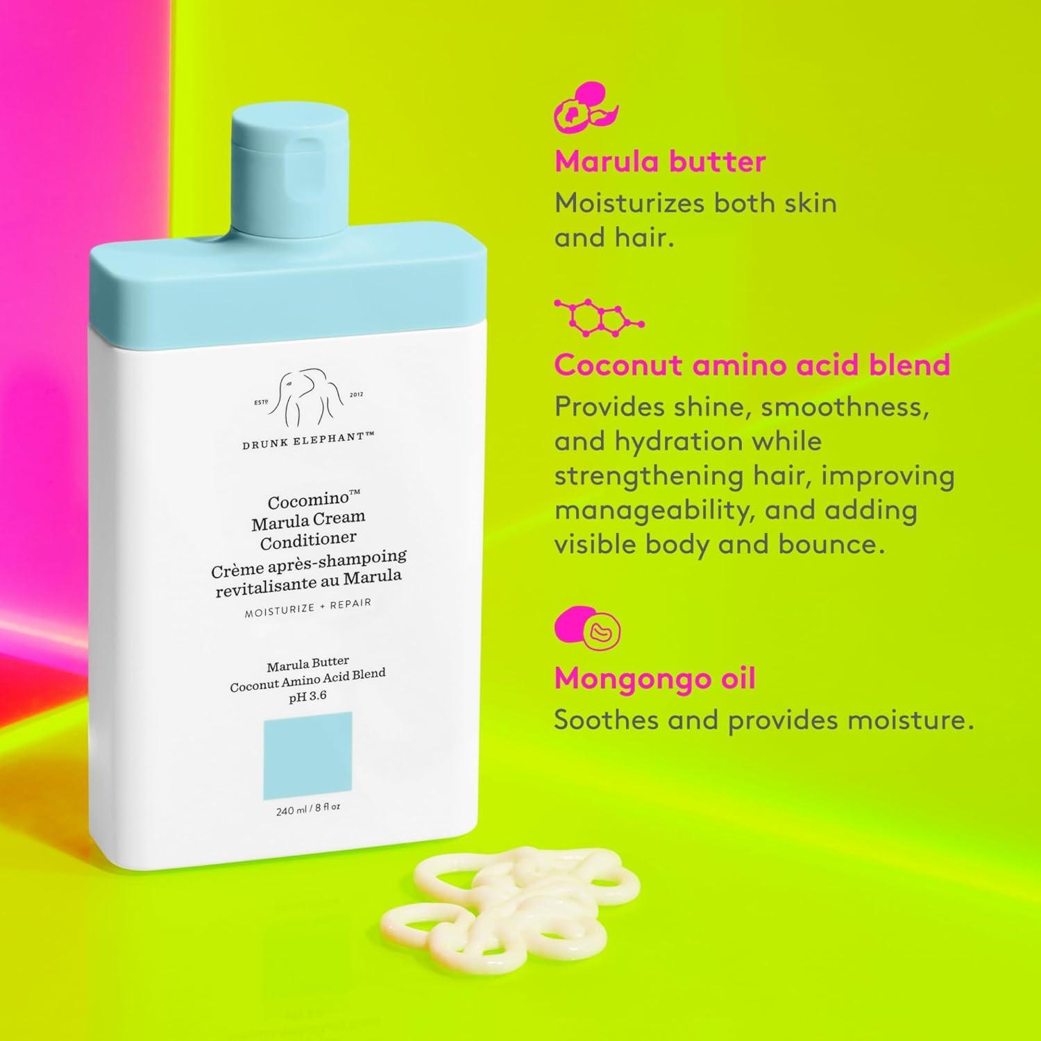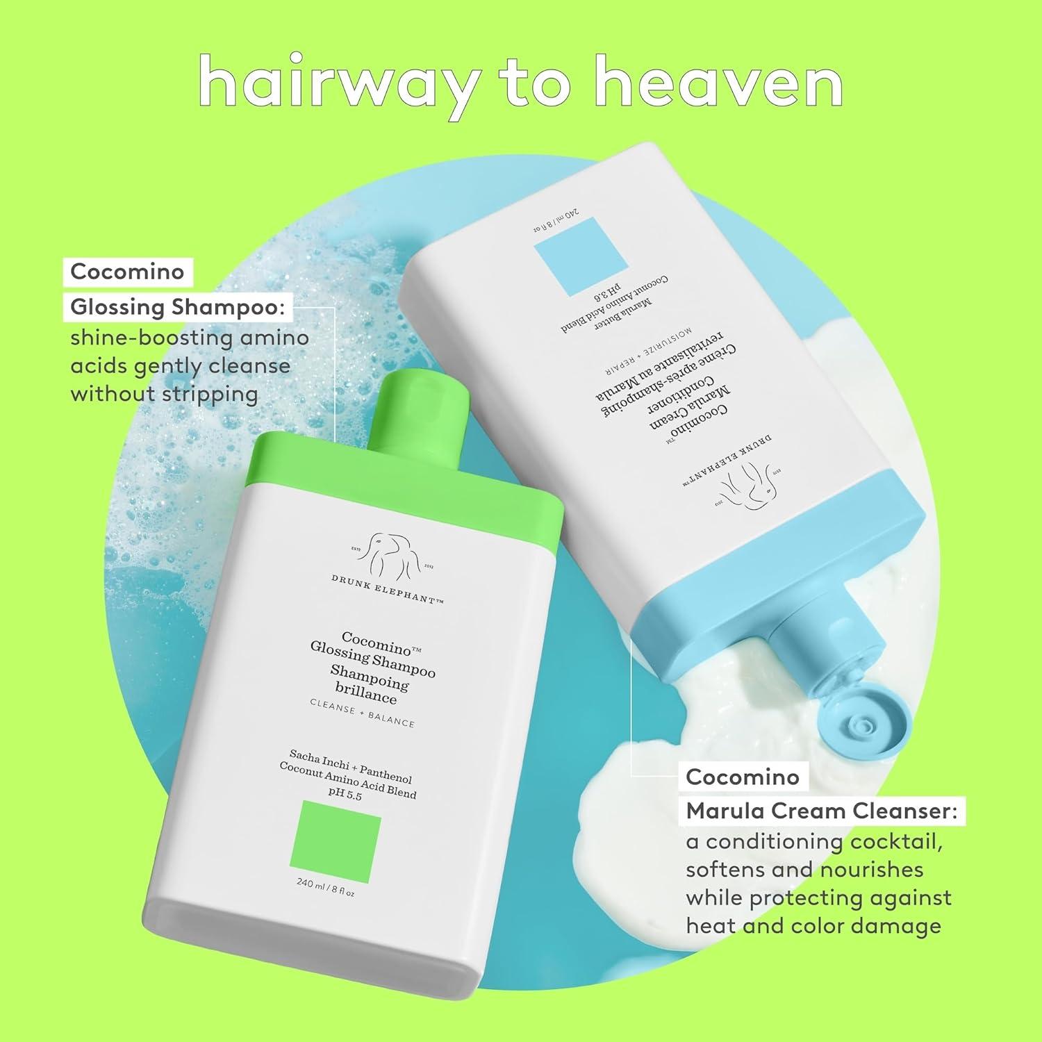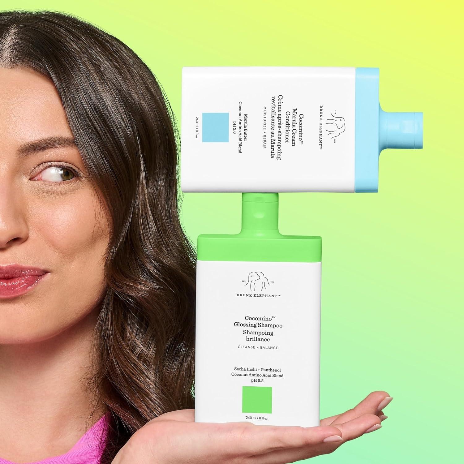 Drunk Elephant Bundle: Cocomino Glossing Shampoo (8 fl oz) and Marula Cream Conditioner (8 fl oz) – Scalp-Friendly Gentle Shampoo and Nourishing Conditioner for Hair