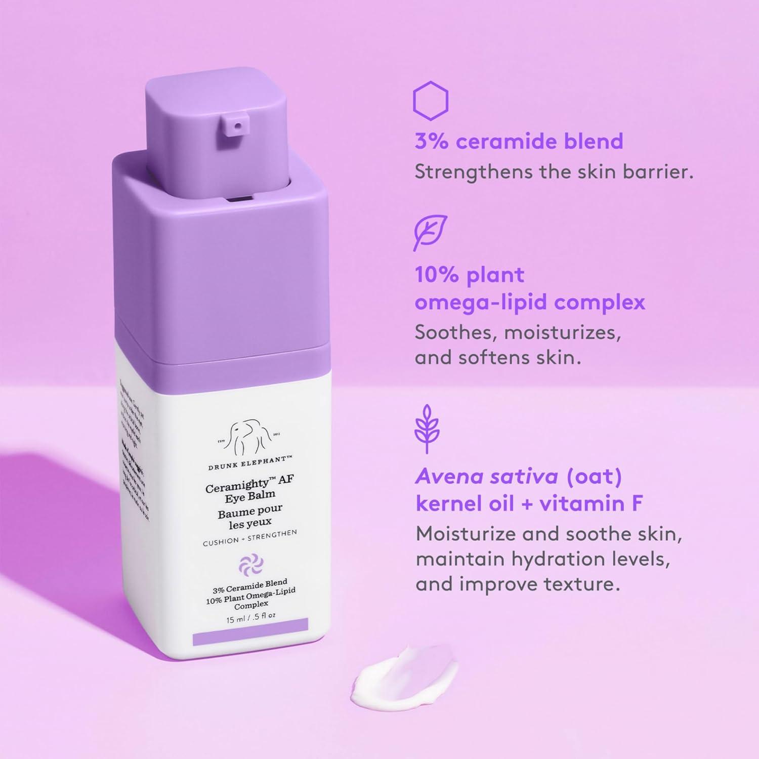 Drunk Elephant Ceramighty AF Eye Balm with Deluxe Sample – 15 ml Moisturizing Eye Cream – 5ml Lala Retro Whipped Cream – Clean Clinical Skincare – Cruelty-Free – Dermatologist-Tested
